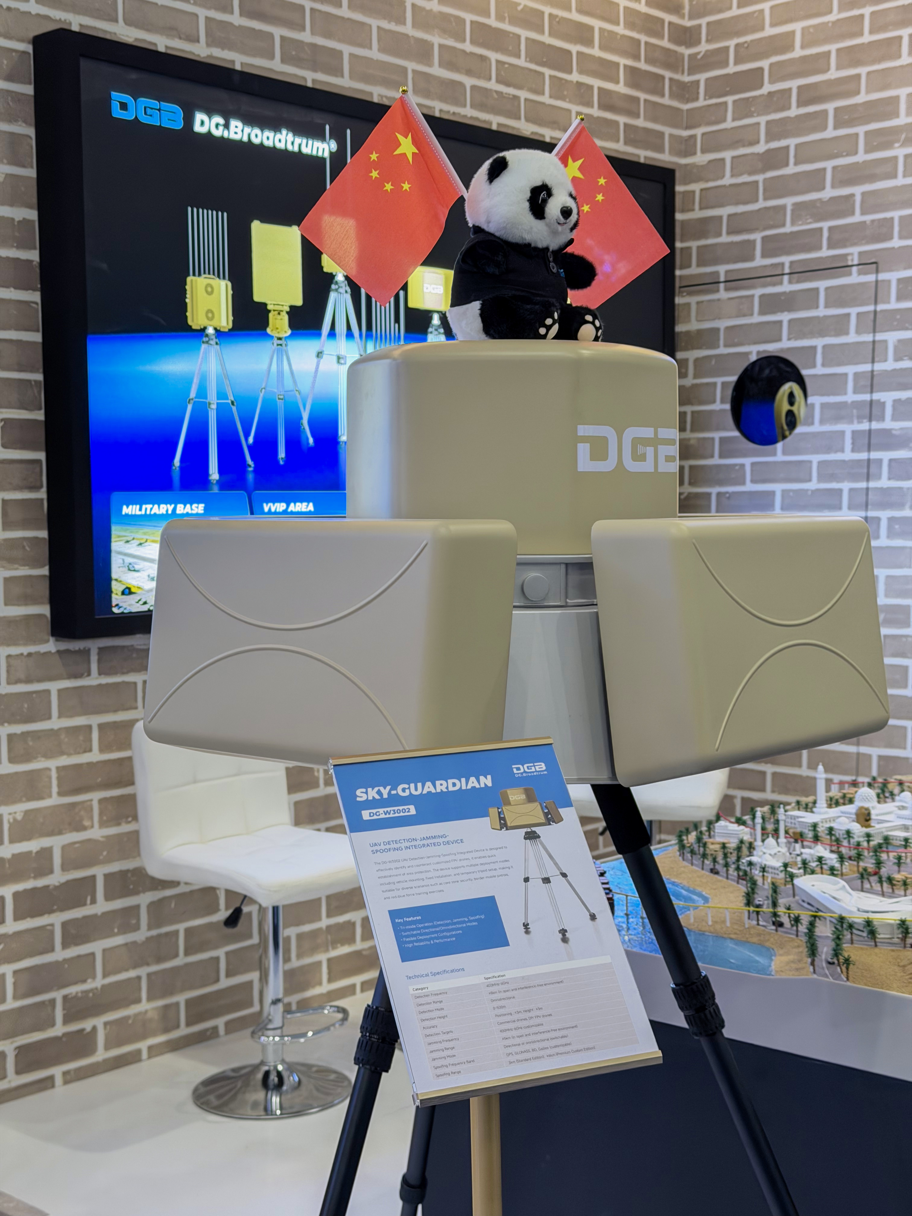 DGB展出的要地安防综合解决方案,以 “全频段覆盖、全时域监控、全地域适配” 为核心优势,可无缝应对低空空域各类无人机威胁,为机场、边境、体育场馆、能源设施等关键场景提供全天候、无死角的安全防护,现场展出的三款核心产品技术亮点突出,实测性能获多方高度评价: